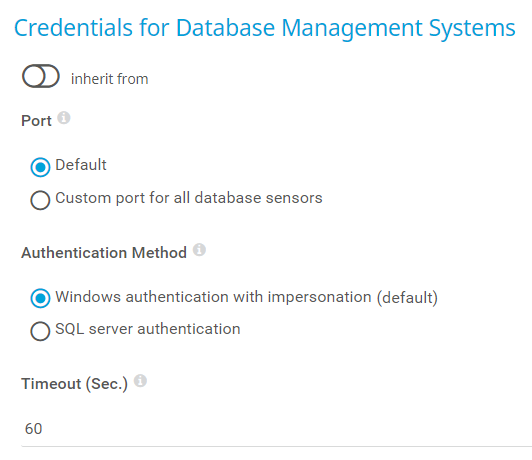 i_round_blueThe System Information feature is enabled by default. To retrieve the data, PRTG automatically uses the credentials for Windows systems and the credentials for SNMP devices that you entered in the device settings or that the device inherits from a parent object like the root group. Consider this when you monitor devices that are outside of your local network, especially when you use SNMP v1 or SNMP v2c, which do not provide encryption.